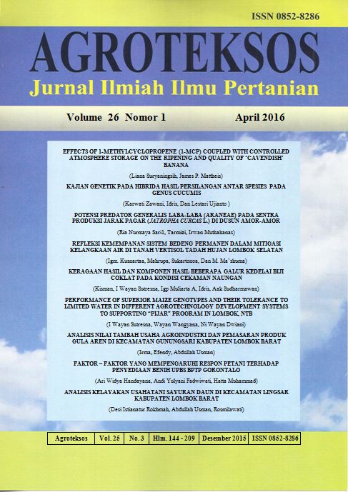 Jurnal Agroteksos Vol 26 No 1, April 2016 memuat 9 artikel, 8 artikel kontribusi dosen Fakultas Pertanian Universitas Mataram, 1 artikel kontribusi Balai Pengkajian Teknologi Pertanian Sulawesi Selatan dan Gorontalo. Di bidang Agroekoteknologi terdapat 5 artikel dan di bidang Agribisnis 3 artikel.